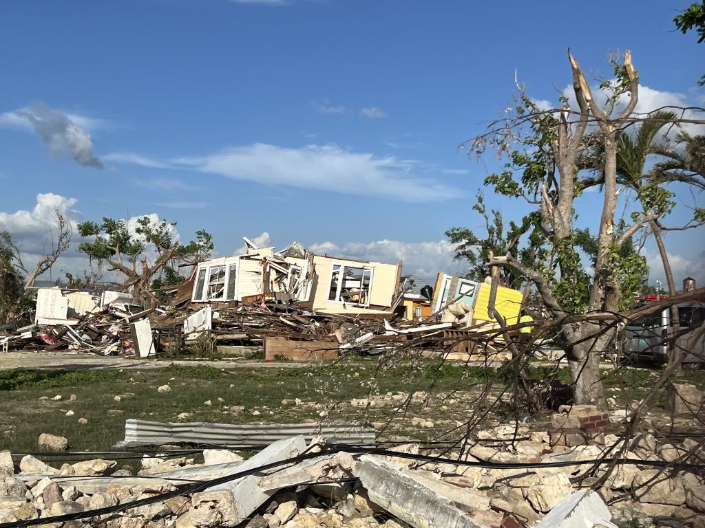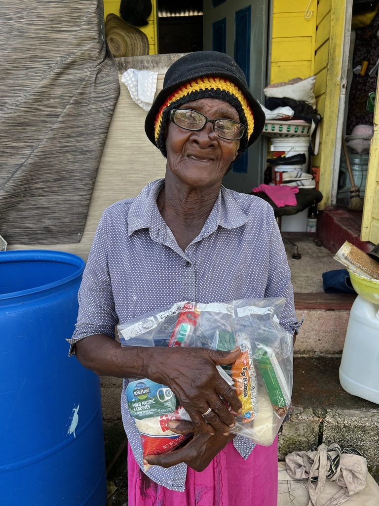 In Round Hill, care packages were distributed throughout the community. Time was spent with Sis Bev, who needs new power lines to connect her home to the street after the storm took hers, and Sis Joy, who lost half her roof and is working toward rebuilding with a concrete deck roof while staying with her daughter at night.