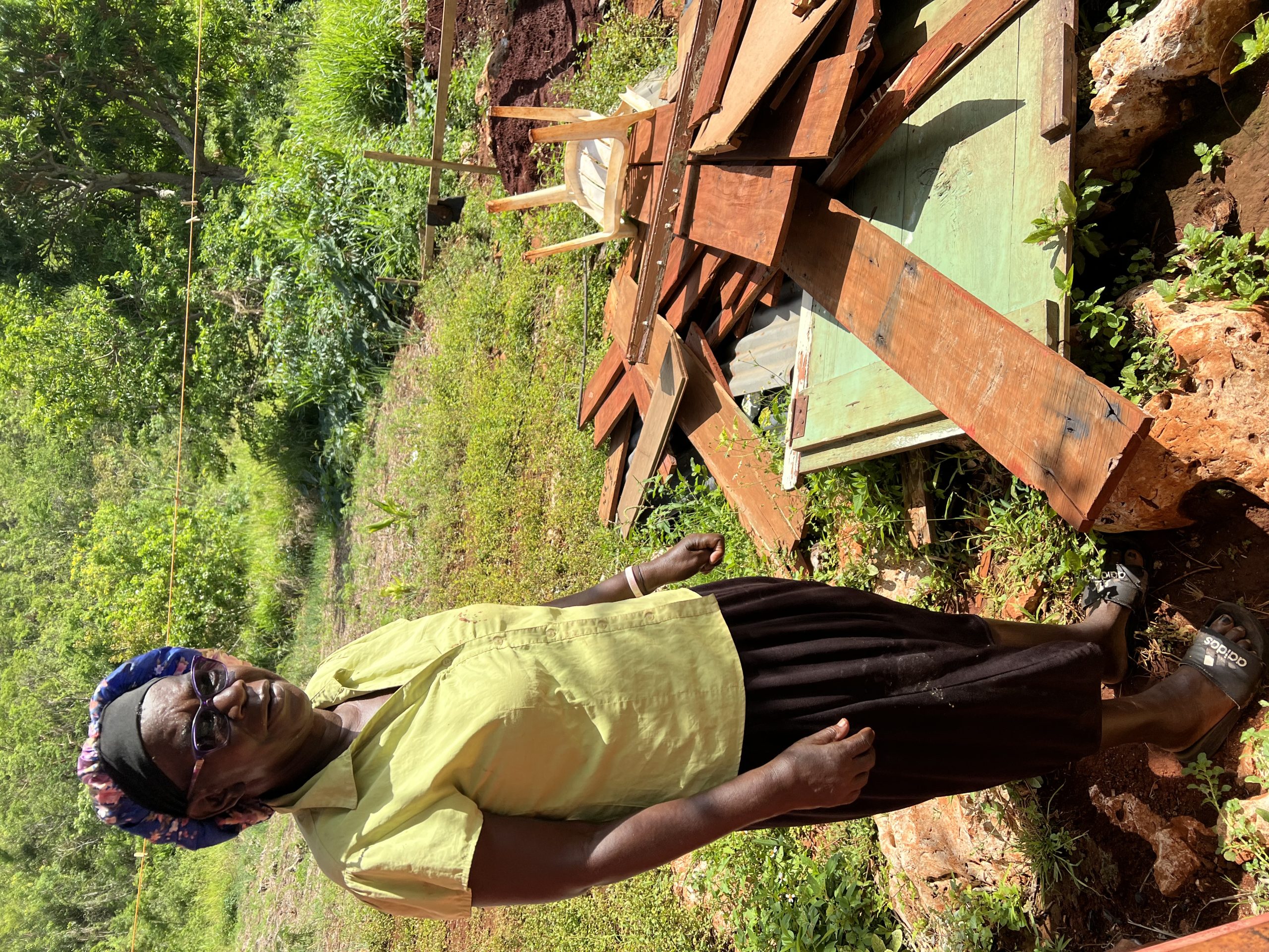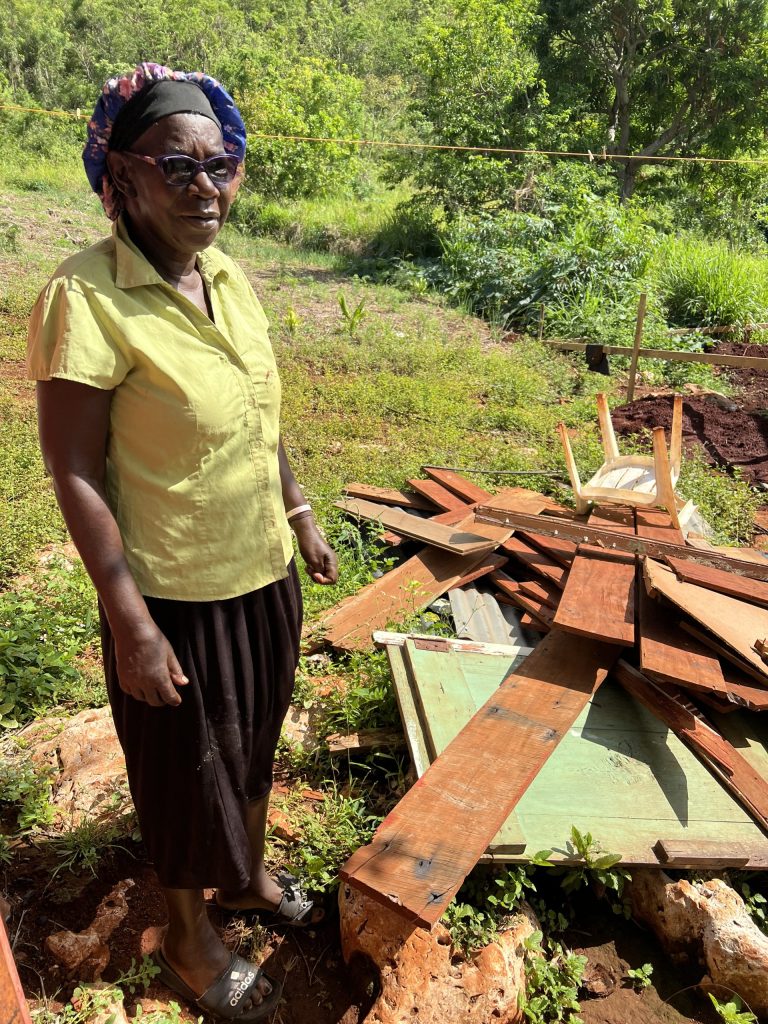 The visitors also stopped at the damaged meeting hall and visited Sis Janetta, who lost her roof during the storm. She huddled in prayer as the wind and rain battered her. While the house remains livable, a side room collapsed, and parts of the porch were torn away. Her grandson managed to recover and reattach the zinc roofing. A care package was given, and she expressed deep gratitude for the visit.